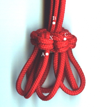 ...each cord will go through the knot from back to