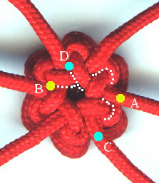 Now make the "Crown Knot" and follow through. This photo should be self-explanatory!