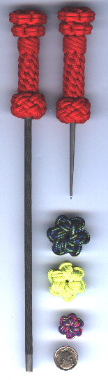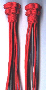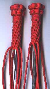 Anyway, back to making the handles!...after you have made the Star Knot, you will add the bottom half of the knot. The steps are the same as making the Star Knot (with a few steps left out!)....start by making the "Single Hitches" as shown. One important thing to remember while making the bottom half of this knot is that it has to be smaller than the top part! You will have to make the bottom half as tight as possible from the start to do this. If the bottom half is as large or larger than the top half, the knot does not look good at all! So keep in mind that the bottom half has to be made as tight as possible from the beginning!